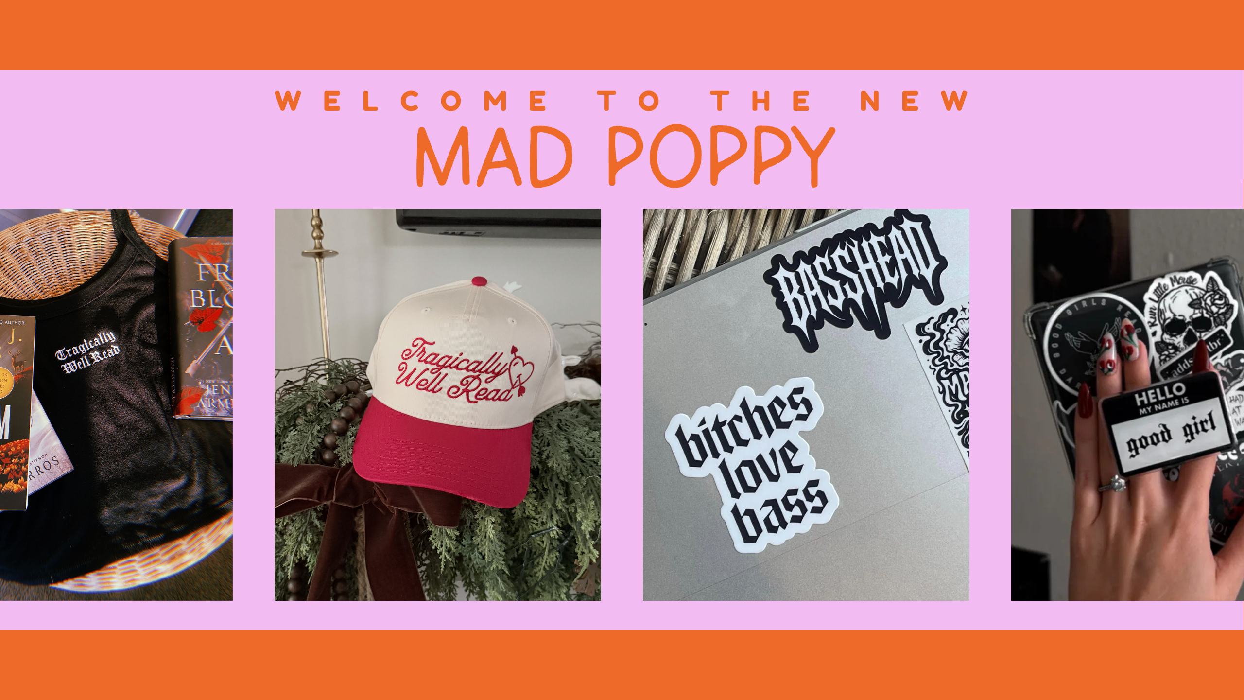 My name is Katherine, I'm a Nashville native, and I am the owner and founder of Mad Poppy. In February 2023, I was looking for a creative outlet which led me to opening my first Etsy store, Mad Poppy Design, selling custom music festival embroidered patches. I spent hours before and after work making orders and growing and adapting my business model. Since then, I have rekindled my love for reading and the book community and have made my bookish store my top priority. I have since stopped selling on Etsy so here you will find a little bit of everything that I love!